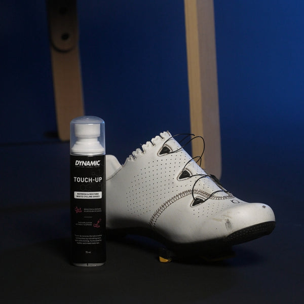 Dynamic Touch-Up is designed to restore the look of white cycling shoes by refreshing worn spots and stitching. Formulated for leather, synthetic and mixed materials.